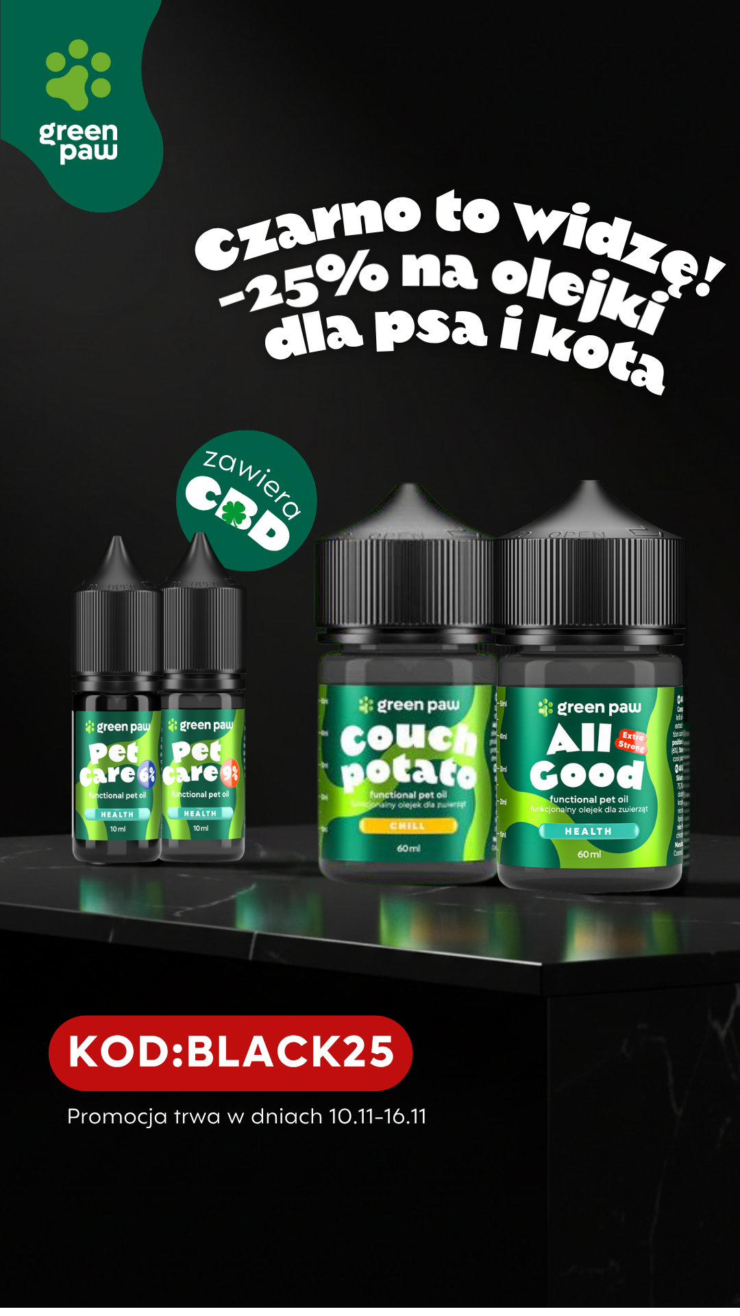 -25% na olejki c CBD z okazji black month. KOD: BLACK25. Trwa do 16.11. Nie dotyczy zestawów.